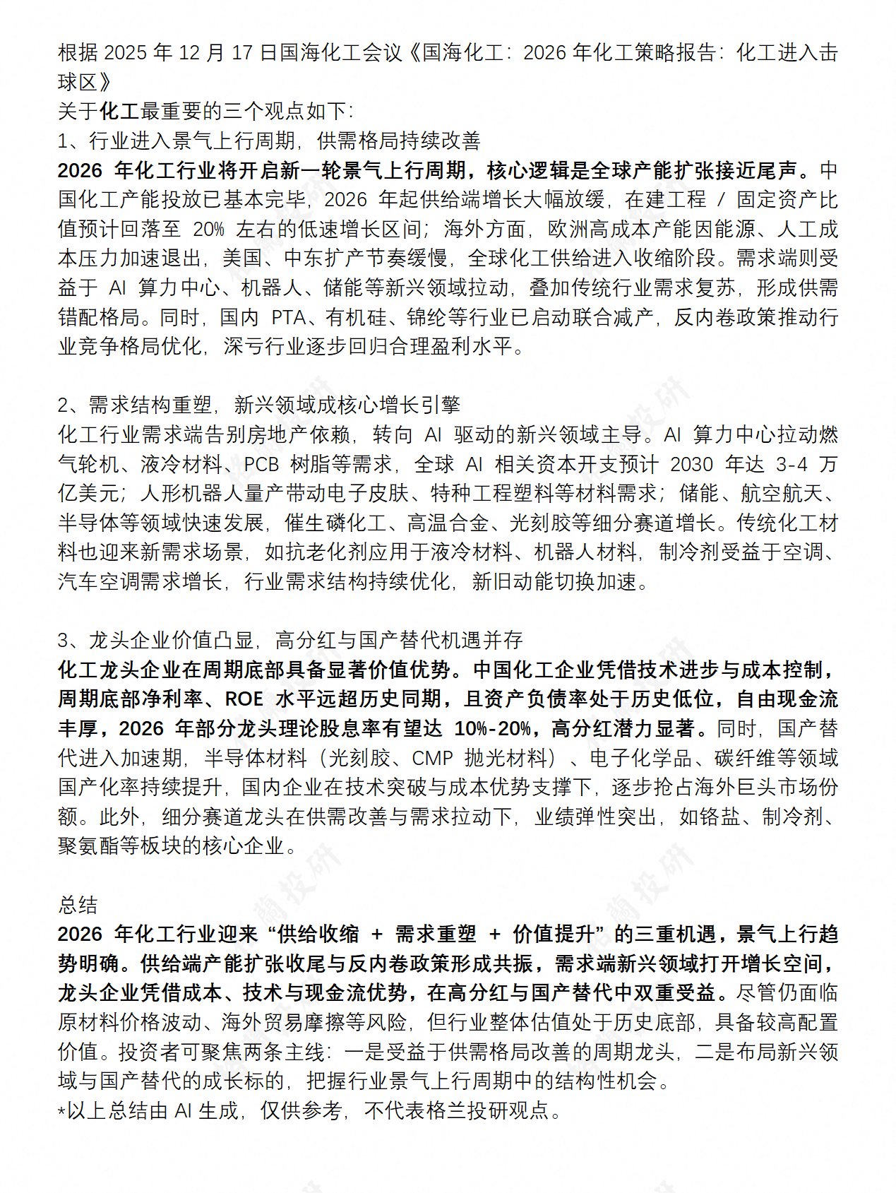 对于基本面优质的个股,建议保持耐心;同时重点关注精细化工上游及存储板块(SK海力士、三星电子)是否存在二波机会。
