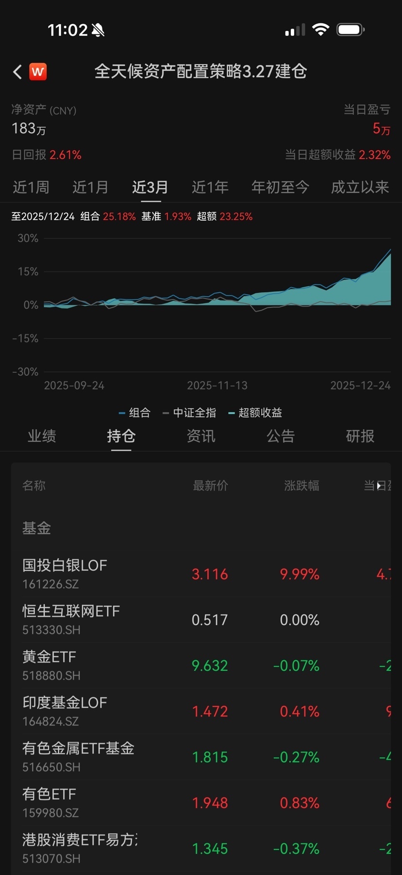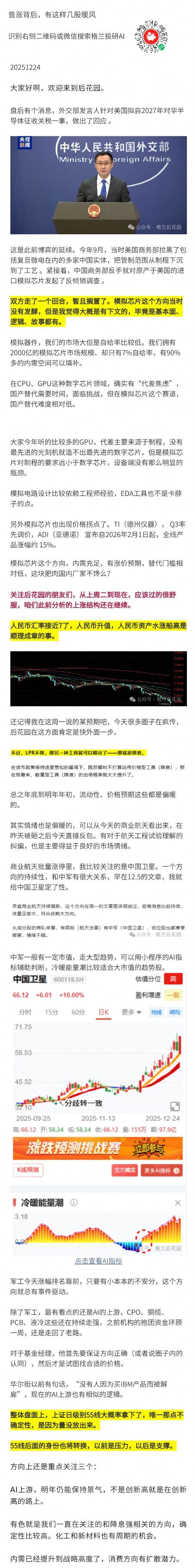 今日市场延续强势,走出了与昨日直播课预判一模一样的走势,市场情绪积极。格老师全天候组合净值突破183万,再创新高。港股因圣诞节中午休市。中芯国际涨价10%的消息成为半导体板块的重要催化剂。