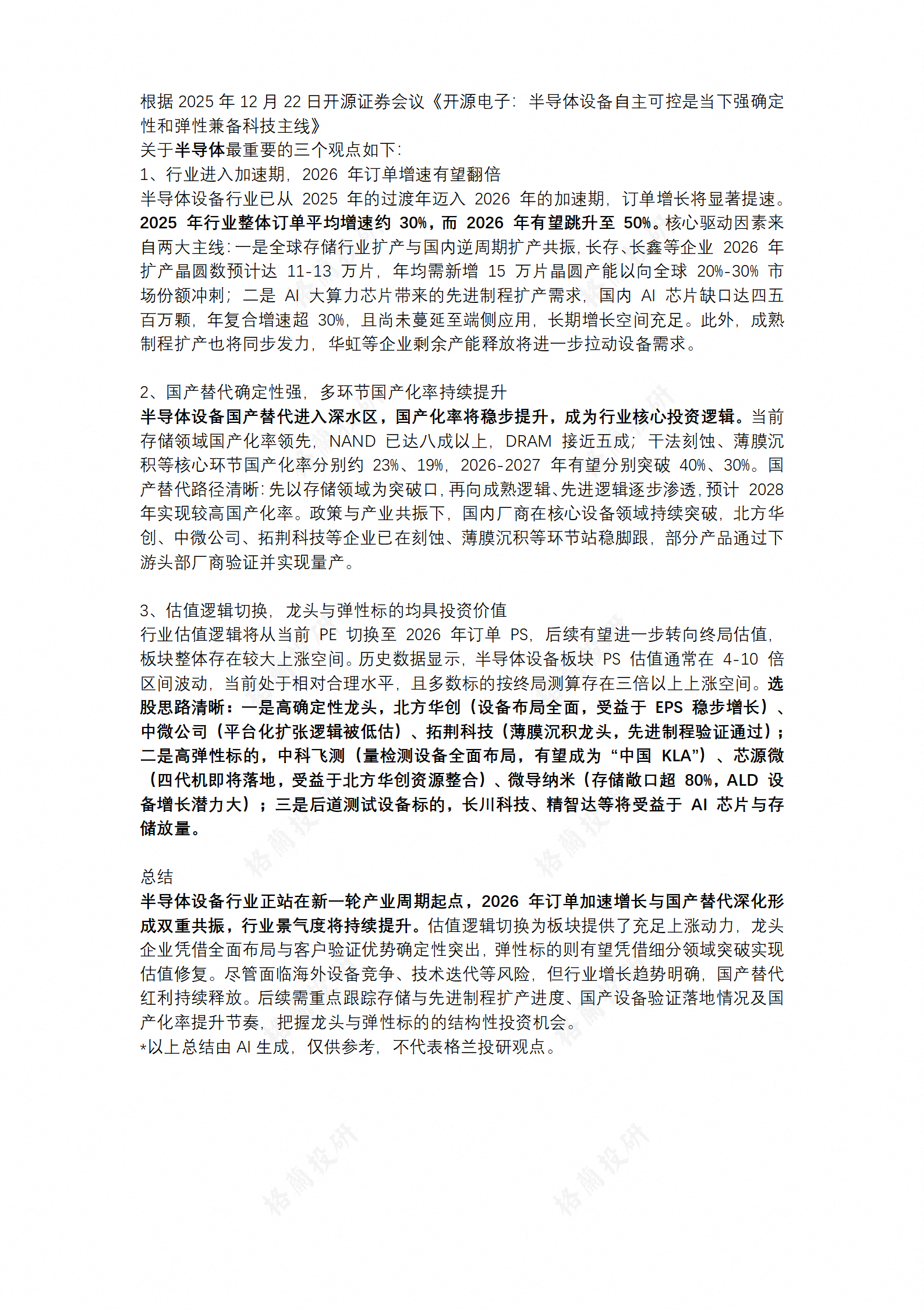 先进封装设备观点重申:存储涨价开始兑现业绩,关注国产存储及先进封装设备