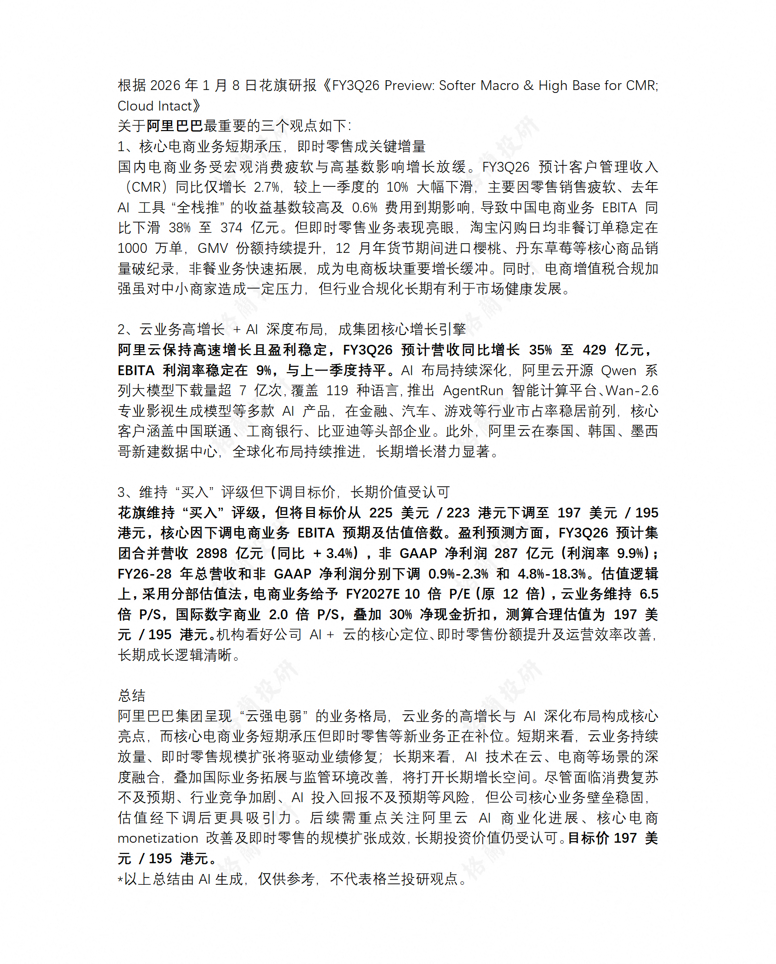 阿里巴巴25Q4 preview要点总结
