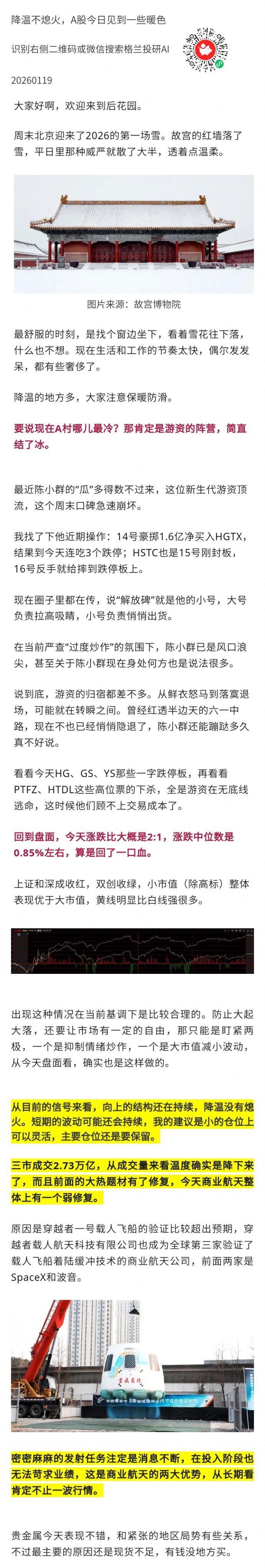 今日市场总结 2026-01-19