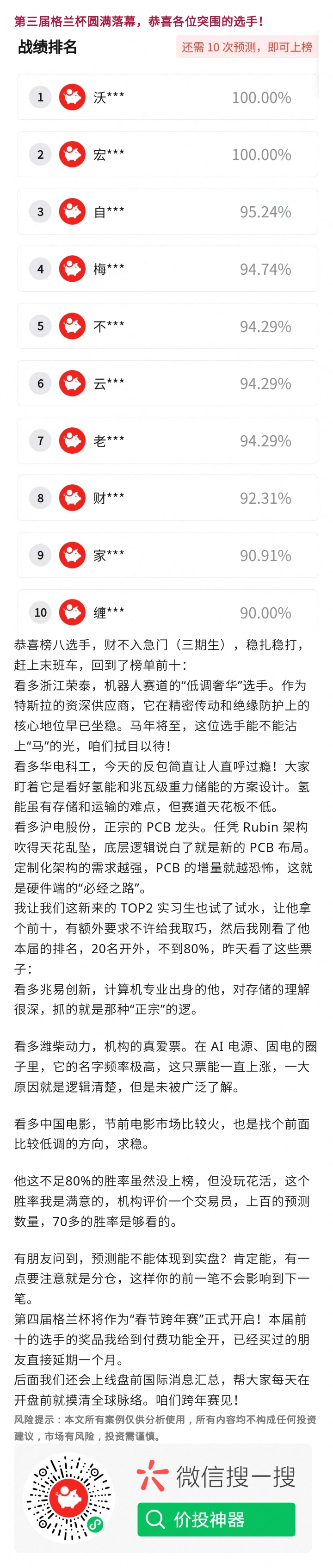 1. 宁德时代:按估值再上20%没问题,决定性机会。东吴电新发布强推研报——成本传导顺畅盈利韧性强。25-27年利润700/914/1136亿,26年30x对应目标价601元。洛阳钼业持股26年贡献86亿投资收益+枧下窝复产30亿+天华70亿+资源端贡献。